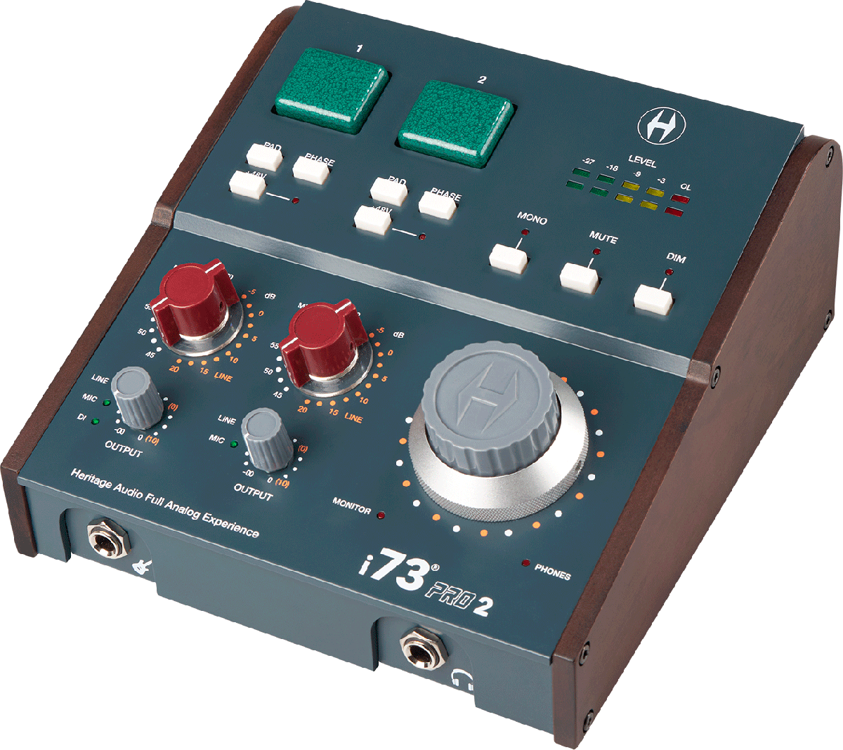 Le I73PRO2 propose une sortie moniteur stéréo analogique sur TRS, contrôlée indépendamment par le MIXER de Heritage Audio, ainsi qu'une sortie casque stéréo indépendante avec CUE dédié, offrant un contrôle et une flexibilité maximum lors de vos sessions d'enregistrement et de mixage.