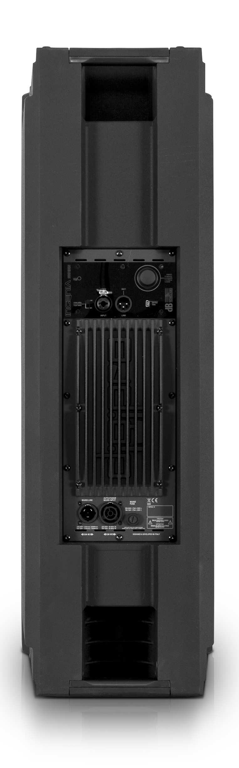 Pour l’intégration dans une chaîne de sonorisation, le dB Technologies Ingenia IG3T propose une entrée combo au format XLR et jack 6,3 mm, permettant de s’adapter à différents équipements. La sortie XLR link out facilite le chaînage vers une seconde enceinte ou un autre élément du système, pratique en stéréo ou en diffusion répartie. Un connecteur mini USB est également présent, pouvant être utilisé dans un contexte de gestion ou de maintenance selon les fonctionnalités prévues par le constructeur. Cette connectique vise un câblage simple et conforme aux standards audio.