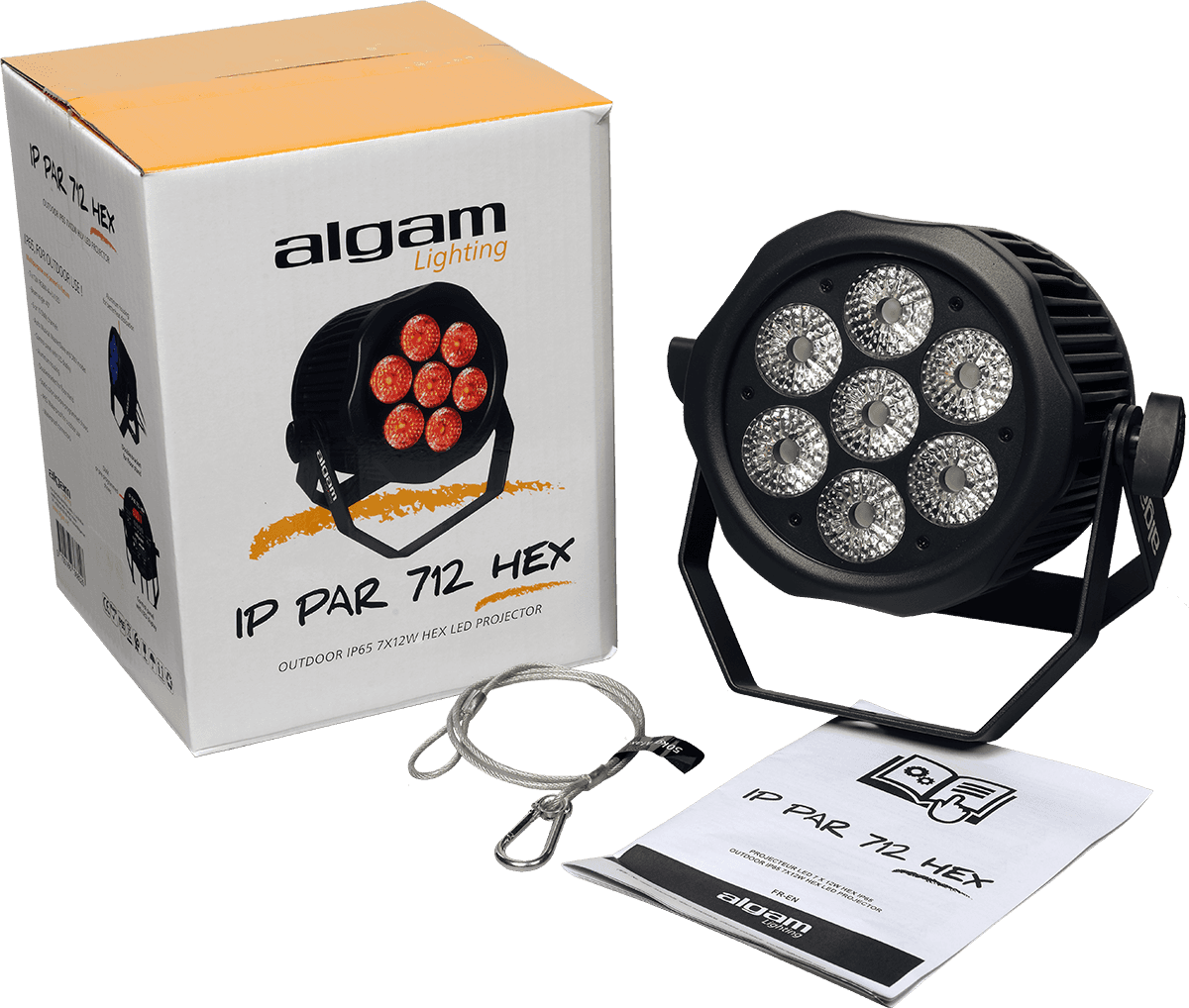 Projecteur professionnel pour une utilisation en extérieur Algam Lighting IP PAR 712 HEX équipé de 7 LED 12W RGBWAUV (Ambre + UV)