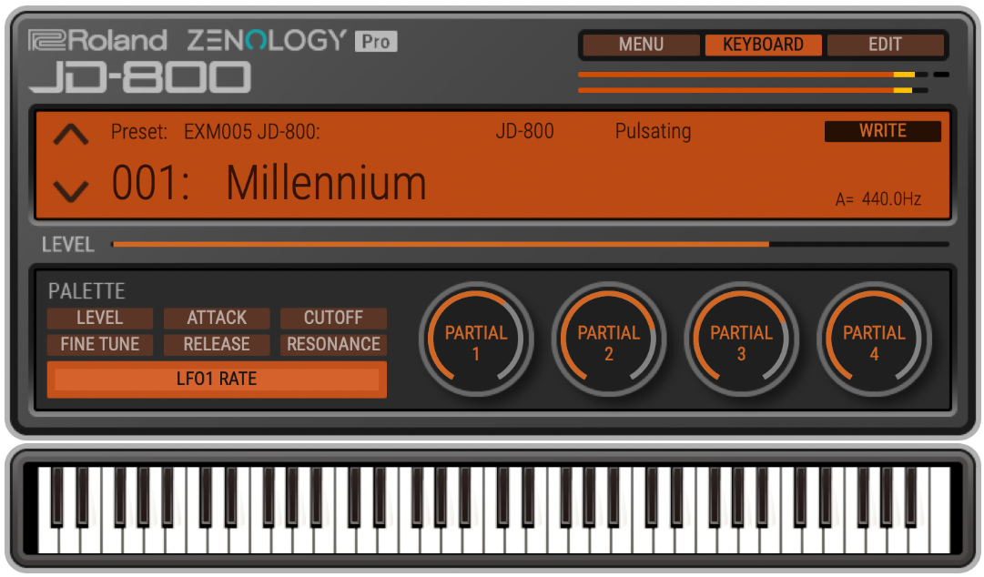 • Intègre les 64 presets du JD-800, plus 64 nouveaux presets créés par les meilleurs concepteurs de sons