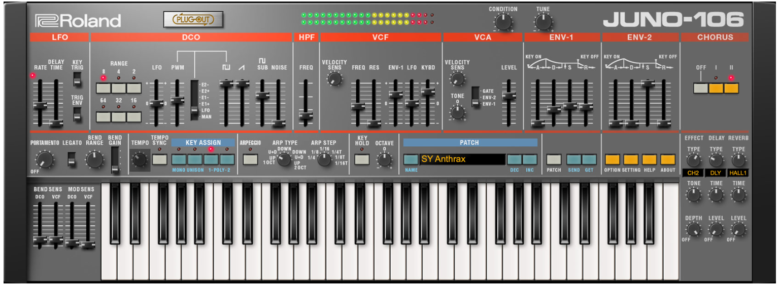 • Le fameux Chorus JUNO, ainsi qu'une Reverb moderne et un Delay synchronisé au tempo