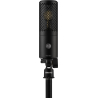 Le microphone est livré avec une suspension antichoc, un filtre antipop, une pince articulée, une mallette de transport et un adaptateur fileté pour une intégration complète en studio.