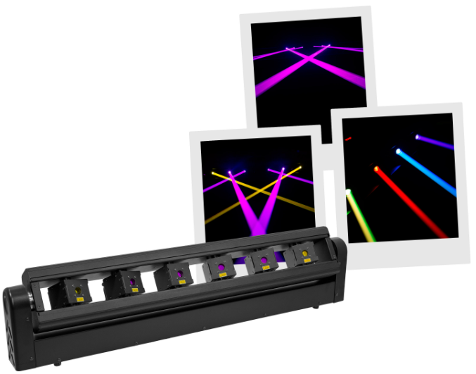 Opter pour un LASER à faisceaux motorisés indépendants comme le Bar 6X400RGB permet de créer des effets visuels complexes sans recourir à plusieurs appareils. Chaque faisceau peut être orienté indépendamment grâce aux moteurs PAN et TILT intégrés, offrant une grande liberté de design lumineux.
