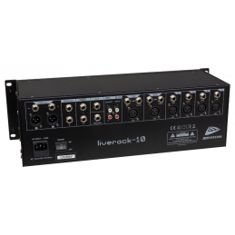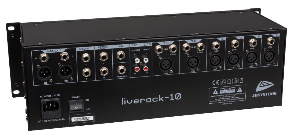 Console de mixage polyvalente JB Systems LIVERACK-10, dans un fomrat rack 19", 10 entrés / 8 canaux avec récepteur Bluetooth intégré.