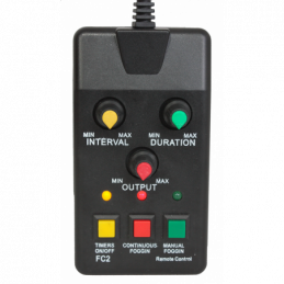 Programmation et réglage du volume, de la durée et de la fréquence d'émission de la fumée au moyen de la télécommande filaire