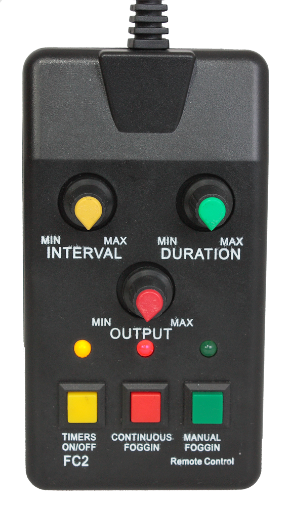 Programmation et réglage du volume, de la durée et de la fréquence d'émission de la fumée au moyen de la télécommande filaire