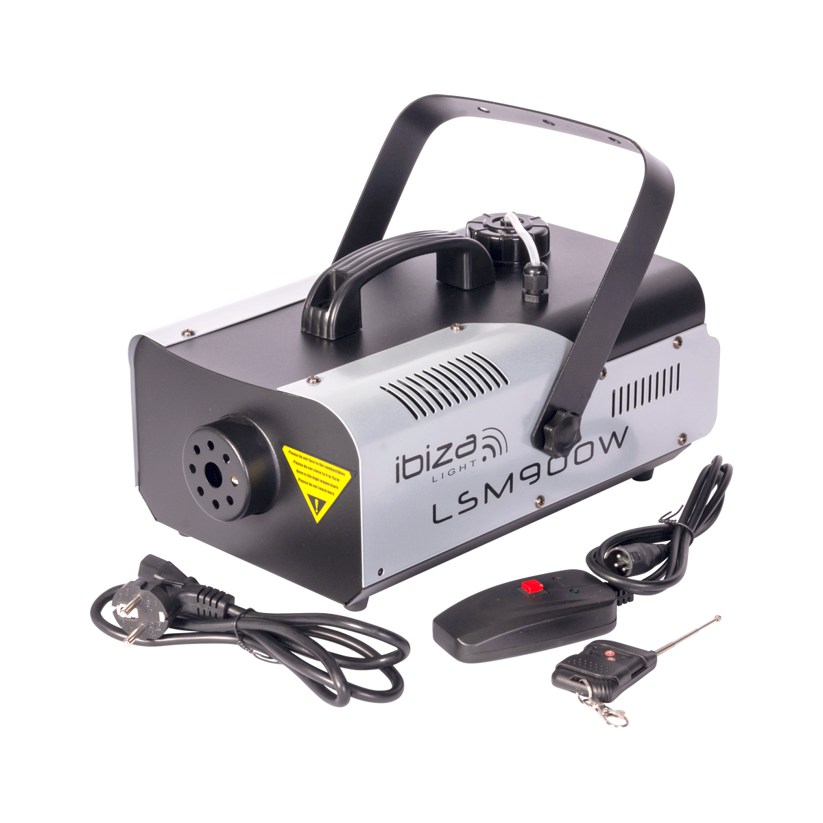 Machine à fumée DMX Ibiza Light LSM900W 900W pour une utilisation professionnelle. Les 2 télécommandes fournies sont utilisables simultanément. La fonction de programmation est innovante, elle permet un contrôle automatisé de la fumée apportant un réel confort de travail.
