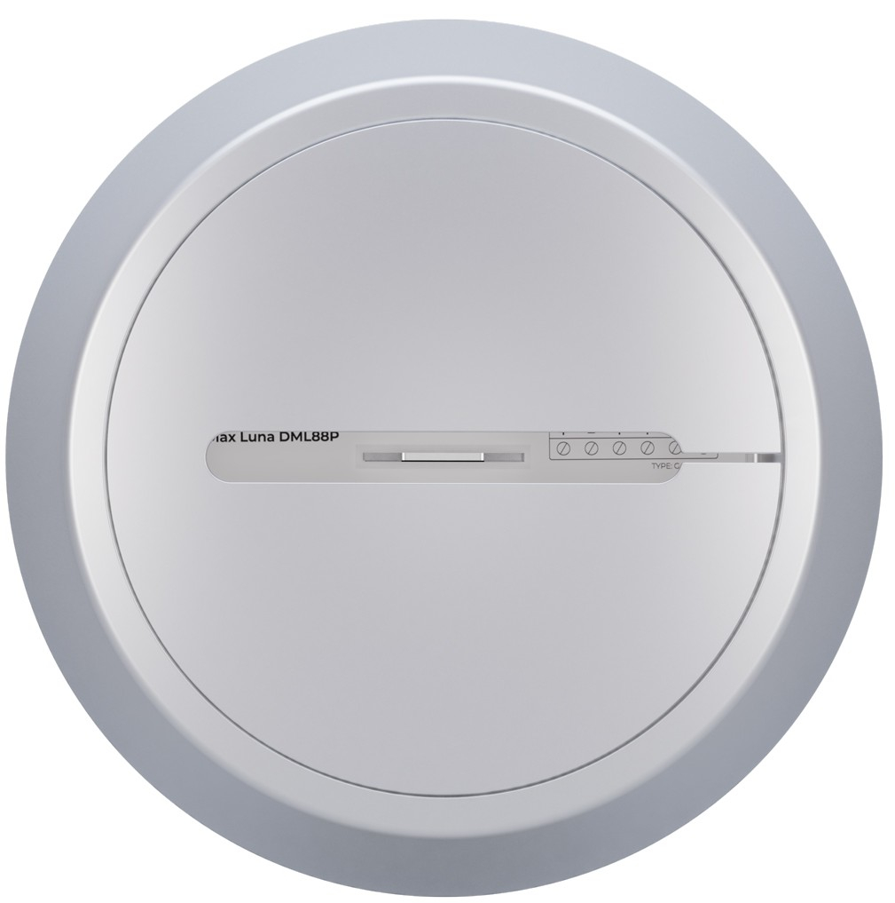 Le DesignMax Luna DML88P est livré avec un système de câble de suspension réglable permettant une fixation à un ou deux points. Cette flexibilité facilite l’adaptation aux structures de plafond existantes. Le câblage est dissimulé pour une installation propre, conforme aux normes UL et CE, et adaptée aux environnements professionnels intérieurs.