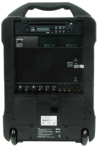 La connectique physique complète comprend deux entrées micro combo XLR/Jack 6,35 mm, une entrée ligne, une sortie ligne, et une sortie pour enceinte passive supplémentaire (type MA-707 EXP). Un égaliseur et des réglages de volume individuels offrent une maîtrise complète du son sur place.
