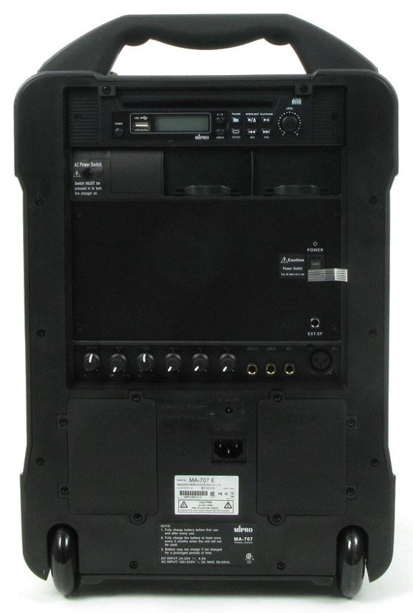 La MA 707PAD MP3 est livrée avec une télécommande infrarouge pour contrôler la lecture audio à distance. Elle dispose également d’un compartiment de rangement intégré pour micros, piles et autres petits accessoires utiles lors des déplacements.