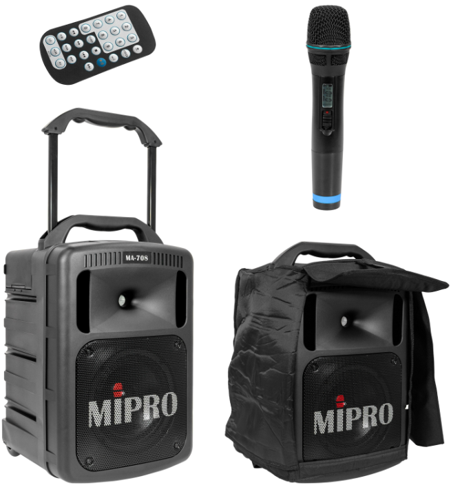 Le pack comprend une enceinte MA-708BCD, un micro sans fil ACT-32H, un récepteur MRM-70 préinstallé et une housse de transport SC-708. Cela constitue une solution audio mobile prête à l’emploi.
