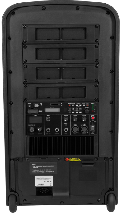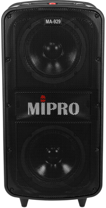 Cette technologie est souvent réservée aux systèmes de sonorisation professionnels fixes, mais Mipro l’intègre ici dans un format compact et mobile. En alignant deux haut-parleurs de 8 pouces et un tweeter, la MA-929 diffuse un son précis, même à longue distance, avec une pression acoustique élevée.