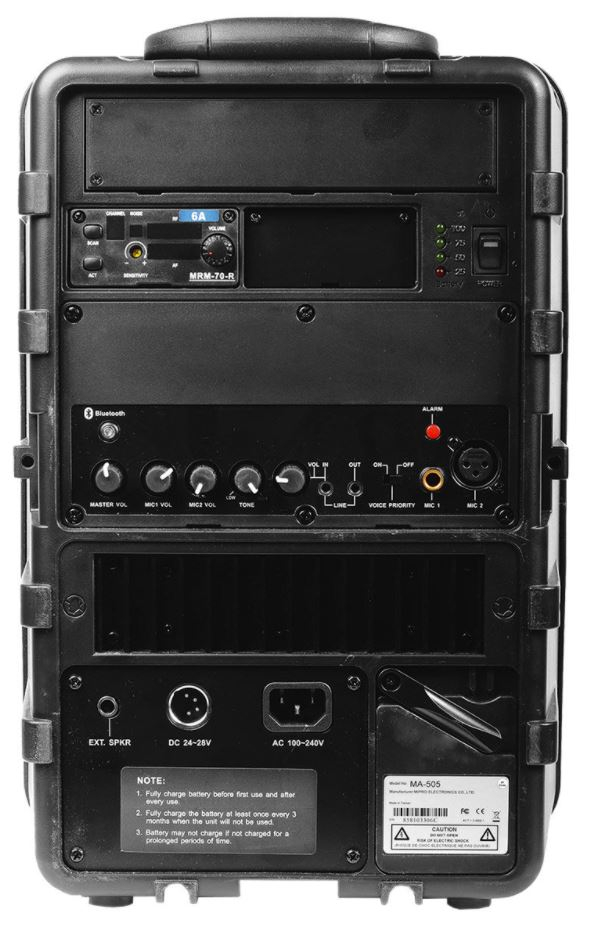 Sono portable amplifiée 2 voies 145W MA 505 Mipro, sur batterie lithium avec récepteur Bluetooth intégré, elle est idéale pour les conférences, séminaires, cérémonies et activités en extérieur.