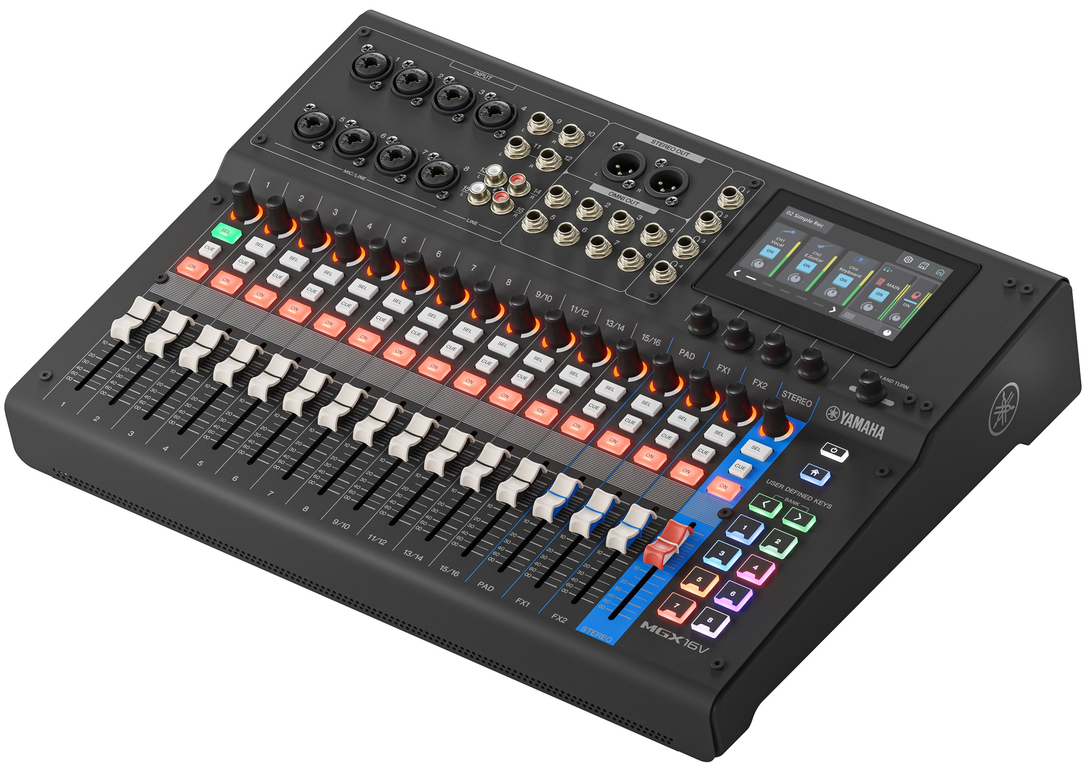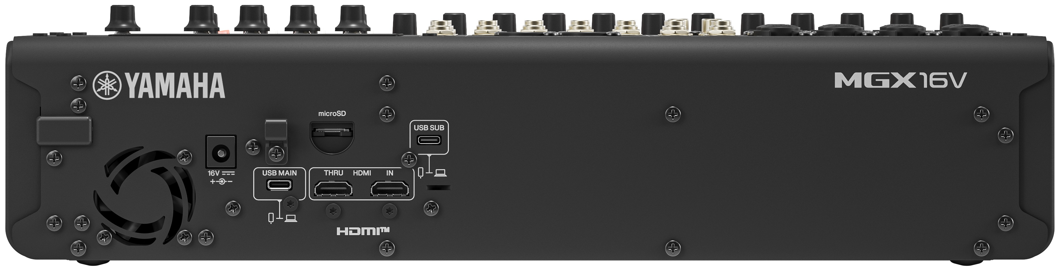 Ces capacités font de la MGX16V B une console complète pour la scène, le studio ou les créateurs de contenus en ligne.