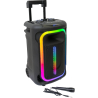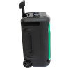 Cette enceinte mobile, équipée de roulettes et d’un trolley, est alimentée par une batterie intégrée rechargeable et comporte un jeu de lumière en façade pour créer une ambiance de fête où que vous soyez.