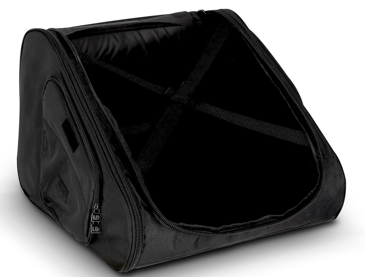 La housse est équipée d'un panneau avant relevable et de rabats latéraux, permettant une utilisation complète du moniteur tout en restant protégé. Les ouvertures à rabat pour les poignées, le panneau de commandes, les connecteurs, le puits pour mât d'enceinte et le dissipateur thermique sont spécialement conçues pour garantir une protection sans compromis.