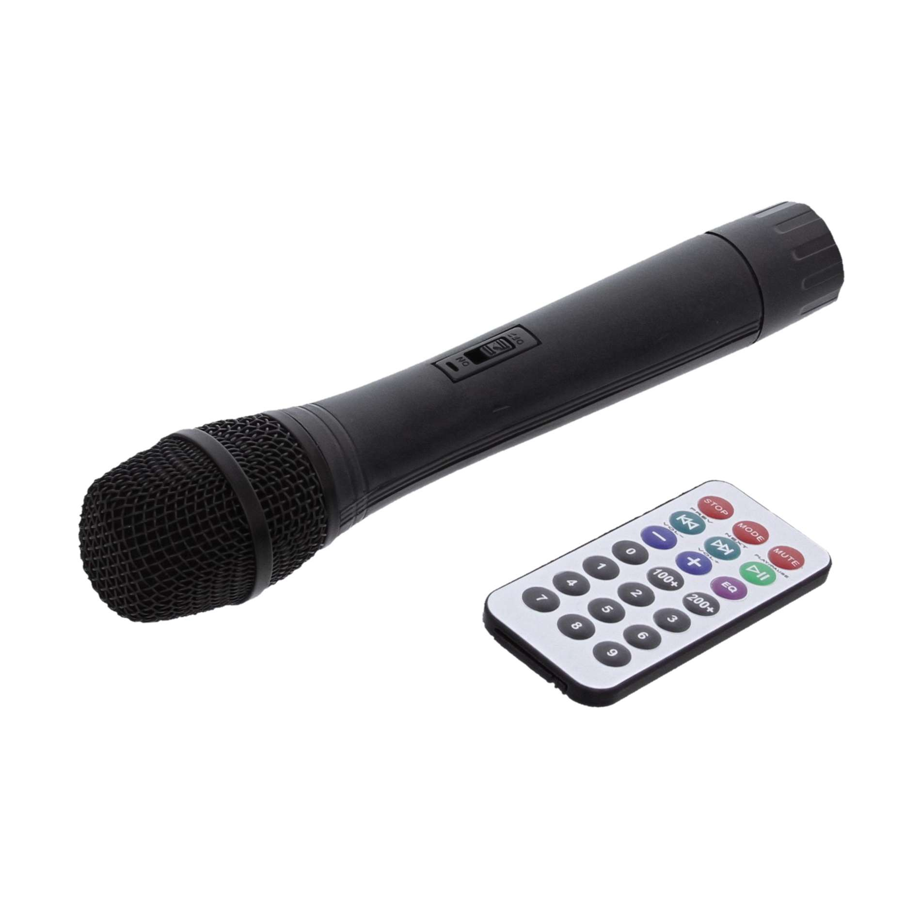 - Accessoires inclus : télécommande infrarouge, microphone sans fil VHF (pile non incluse)