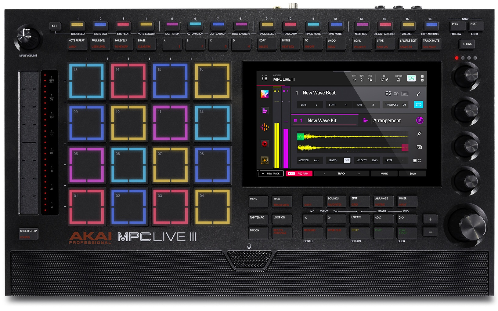 Le Akai MPC Live III est une station de production musicale autonome conçue pour les beatmakers, producteurs et performers live. Doté de pads MPCe ultra-réactifs, d’un écran tactile 7", d’un processeur 8 cœurs et de 8 Go de RAM, il permet de créer sans ordinateur. Ses fonctionnalités incluent un micro intégré, des haut-parleurs, des effets pro, un séquenceur 16 pas, une connectique complète (USB-C, MIDI, CV/Gate, XLR/TRS) et un espace de stockage de 128 Go extensible. Alimenté par batterie rechargeable, il offre un workflow professionnel partout, à tout moment.