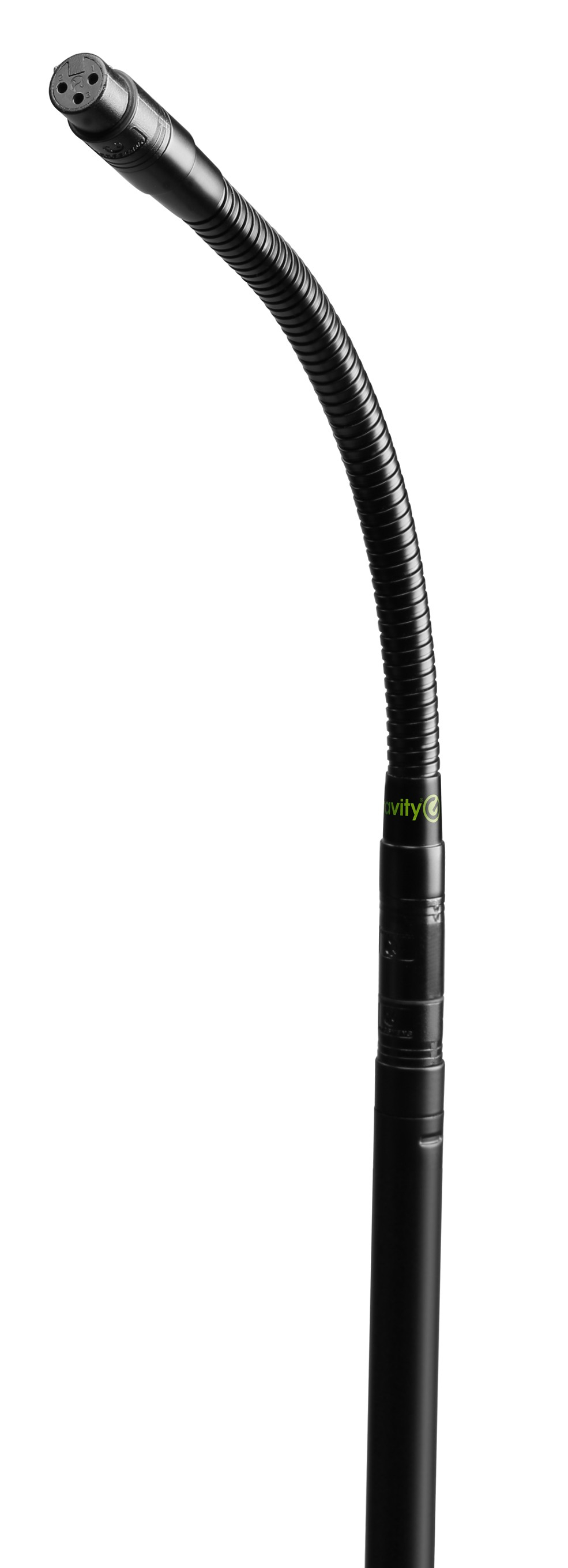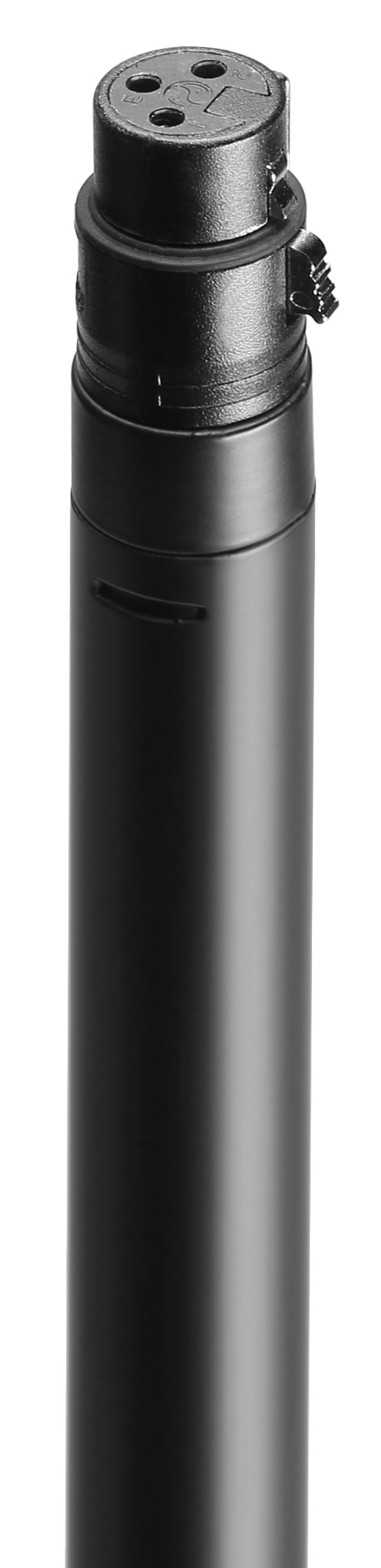 Le micro se branche directement sur le connecteur XLR intégré au col de cygne. Aucun adaptateur ni pince n’est nécessaire. La sortie XLR se trouve à la base du pied, ce qui permet de connecter un câble sans qu’il soit visible sur le tube.