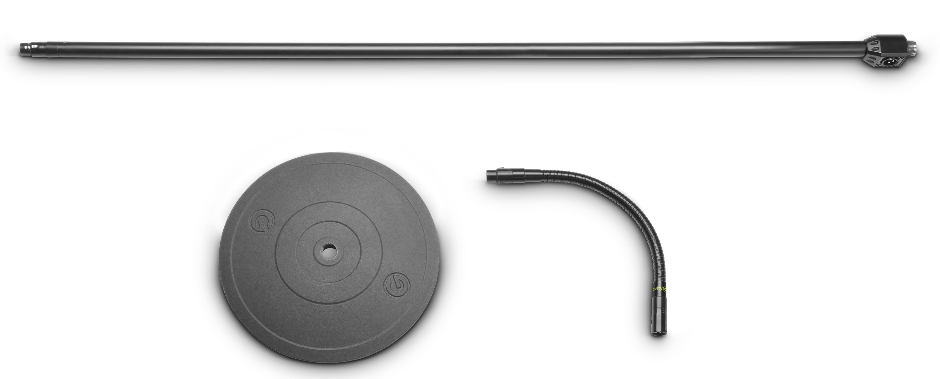 Le produit est livré seul, sans micro ni câble. Des accessoires optionnels tels que col de cygne supplémentaire ou disque de lestage sont disponibles pour personnaliser l’installation.