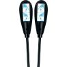 Cette lampe utilise 4 LED réparties sur deux bras flexibles. Chaque bras possède deux LED que l'on peut activer individuellement grâce à des interrupteurs. Ce système offre un éclairage ciblé et ajustable, parfaitement adapté à la lecture de partitions dans un environnement sombre.