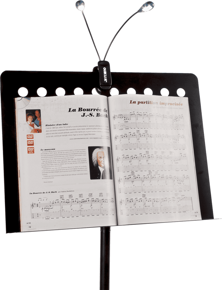 La présence de deux bras indépendants permet une répartition plus homogène de la lumière sur les partitions. Chaque bras étant orientable, l’utilisateur peut ajuster précisément l’éclairage selon ses préférences et l’environnement de jeu.