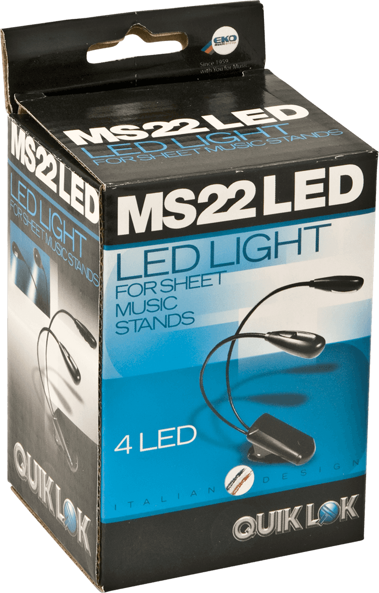 La lampe de pupitre Quik Lok MS/22LED offre un éclairage LED fiable, réparti sur deux bras souples. Chaque bras intègre deux LED, activables séparément via des interrupteurs dédiés. Cette configuration permet d'adapter l’intensité lumineuse à différents contextes, que ce soit en concert, en répétition ou lors d’enregistrements en studio.