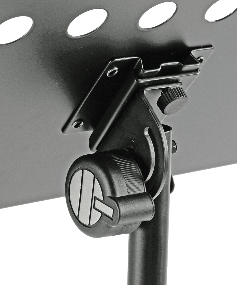 Le MS/330WB est équipé d’un plateau métallique perforé amovible, conçu pour faciliter le transport et éviter les déformations ou chocs. Ce plateau se détache rapidement, ce qui simplifie la mise en housse et prolonge la durée de vie du pupitre.