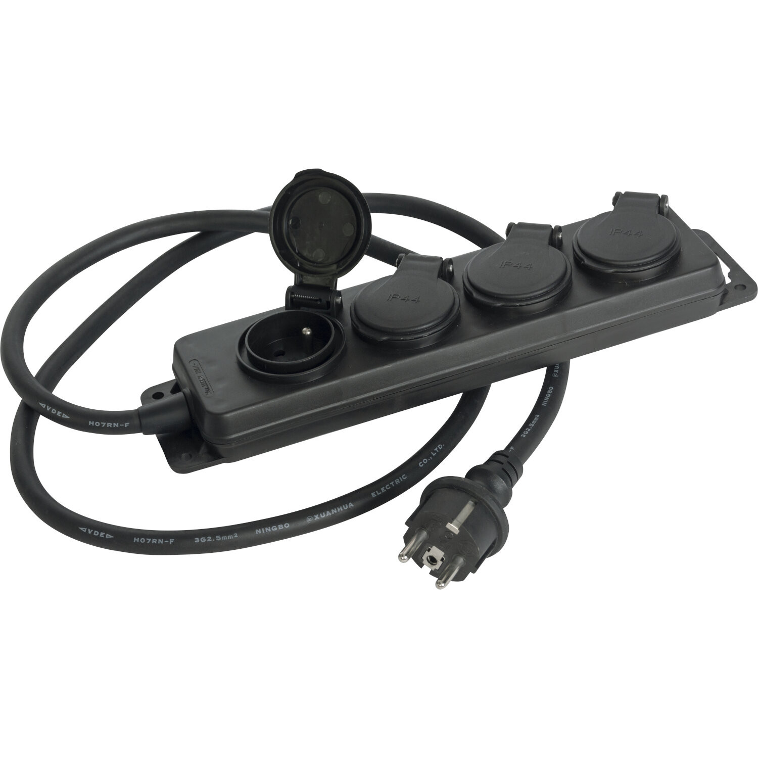 Le câble H07RN-F est également apprécié pour sa flexibilité, facilitant l'installation de la multiprise dans des espaces variés. Avec sa capacité à résister aux conditions difficiles, il représente un atout de choix pour une utilisation en extérieur ou en milieu industriel.