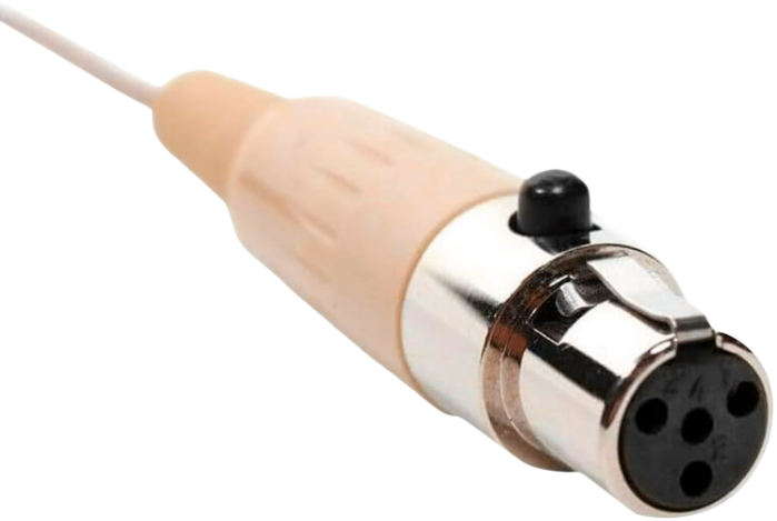 Le micro serre-tête Mipro MU-57HTS est équipé d’un connecteur Mini-XLR 4 broches (TA4F), parfaitement compatible avec les émetteurs de poche Shure. Cette compatibilité assure une intégration immédiate sans adaptateur, facilitant l’usage dans les systèmes HF professionnels courants.