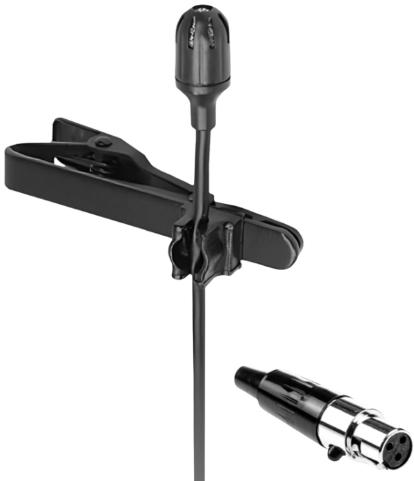 Ce micro-cravate fonctionne sous une alimentation de 5 V DC, généralement fournie par l’émetteur auquel il est connecté. Cette faible tension est standard pour les micros professionnels à condensateur de ce type.