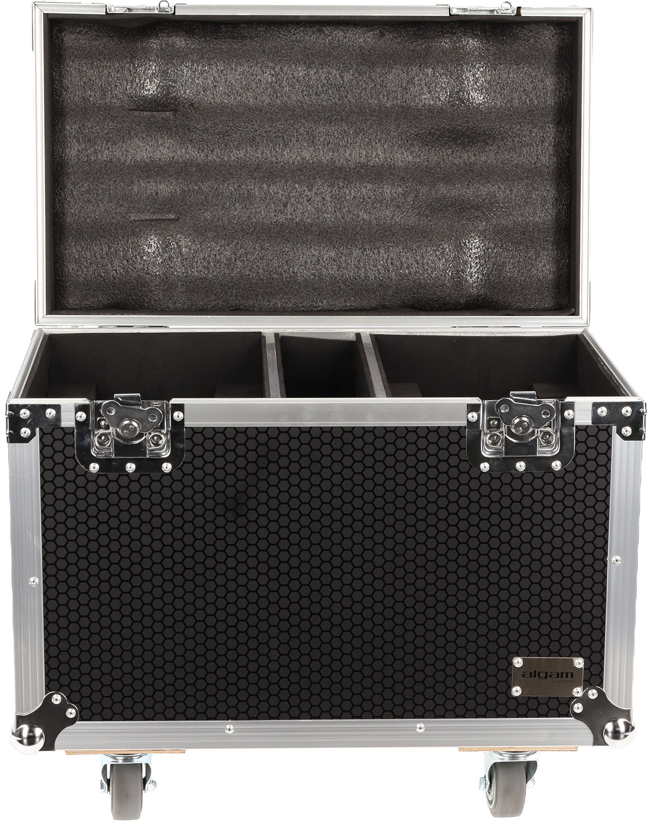 Le Algam Lighting MW19X15ZX-FC est un flight case d’éclairage à roulettes conçu pour protéger et transporter deux lyres MW19X15ZX avec leurs accessoires. Robuste et mobile, il possède une structure en bois multi-plis renforcée, un intérieur en mousse, quatre roulettes dont deux avec freins, et des poignées métalliques encastrées. Ses trois compartiments assurent stabilité et rangement optimal pour les équipements lumière.