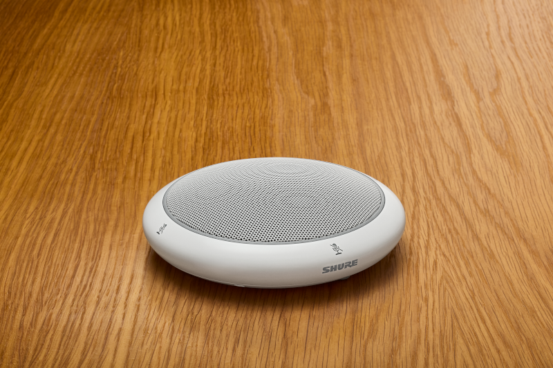 Le design du Shure MXA320 reprend les codes esthétiques du MXA310 avec un format rond, compact et discret. Sa finition blanche permet une intégration harmonieuse dans des environnements professionnels variés, sans perturber l’esthétique de la table de réunion ou de la salle de conférence.