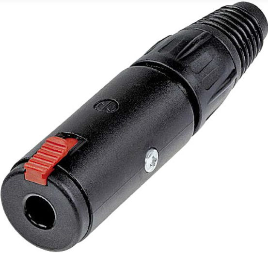 Ce modèle est compatible avec les jacks mono ou stéréo conformes à la norme EIA RS-453 (Gauge A), ce qui garantit une grande polyvalence. Il convient aussi bien aux applications live qu’en studio. Le loquet de déverrouillage rouge permet une extraction facile, sans outil ni contrainte.