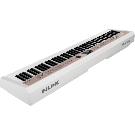 Le piano numérique portable NUX NPK-20 blanc fusionne élégance et technologie avancée, offrant 271 sons de haute qualité, un clavier inspiré des pianos à queue acoustiques, connectivité Bluetooth, et des fonctionnalités innovantes pour une expérience musicale inégalée.