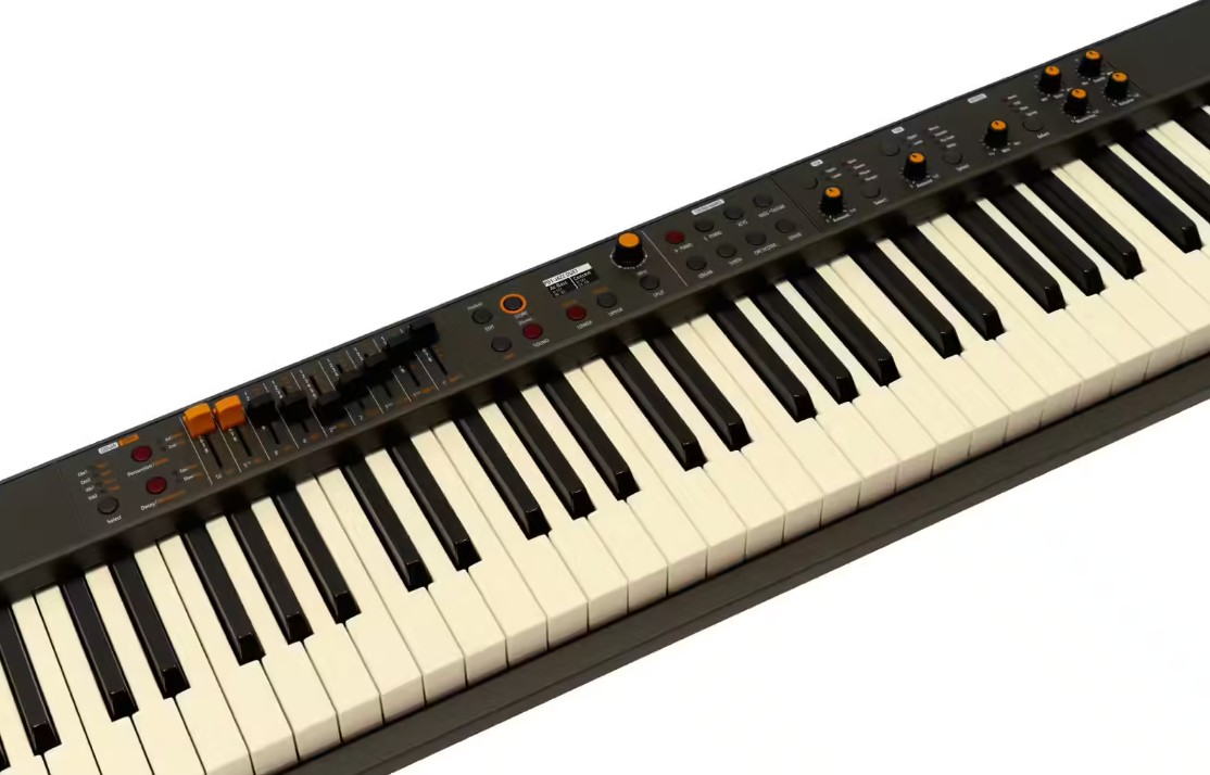 Les moteurs électrique, orgue et synthèse complètent l’architecture sonore. Les pianos électriques bénéficient de contrôles dédiés sur les tines et le bruit d’étouffoir, tandis que l’orgue repose sur une modélisation tone wheel avec contrôle par drawbars. Le moteur de synthèse à oscillateurs virtuels permet de créer des textures analogiques variées, offrant une large palette sonore pour la scène et le studio.