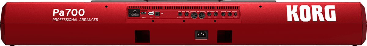 Le Korg PA700RD intègre toutes les connectiques nécessaires pour une intégration fluide dans n’importe quel environnement. Il comprend des ports USB pour sauvegarde et contrôle, des entrées audio pour lecture ou enregistrement externe, ainsi qu’une compatibilité MIDI complète pour synchronisation avec d’autres appareils.