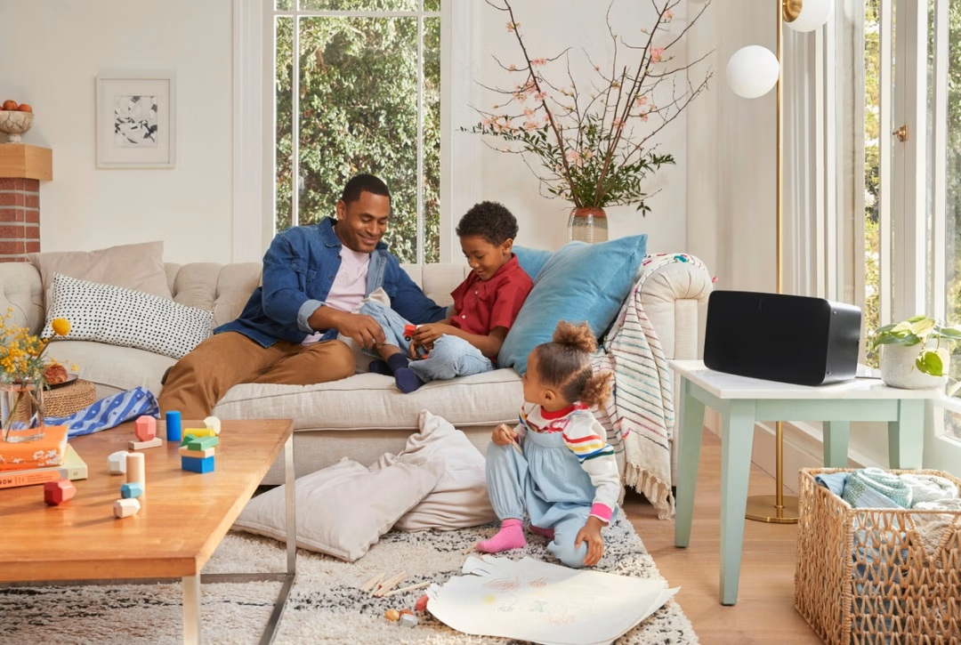 Le système multiroom du Sonos Five utilise le Wi-Fi pour diffuser la musique dans toutes les pièces de manière synchronisée. En combinant plusieurs enceintes Sonos, les utilisateurs peuvent créer un univers sonore cohérent et immersif dans toute leur maison, sans fil ni décalage audio.