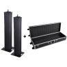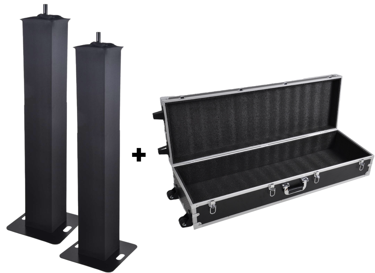Conçus pour faciliter l’installation des enceintes et jeux de lumière, les totems dissimulent les câbles et se montent sans outil en moins de deux minutes. Leur housse de transport et leur légèreté permettent un transport pratique. Le flight case en nid d’abeille noir assure quant à lui une protection optimale grâce à sa mousse intérieure, ses coins métalliques et ses cornières en aluminium.