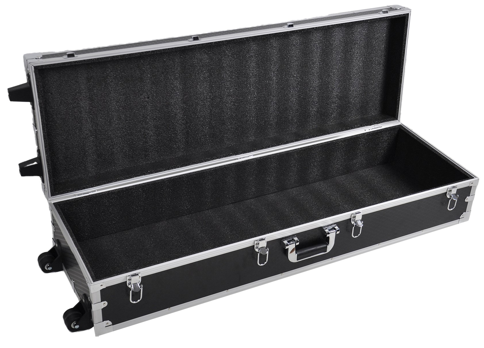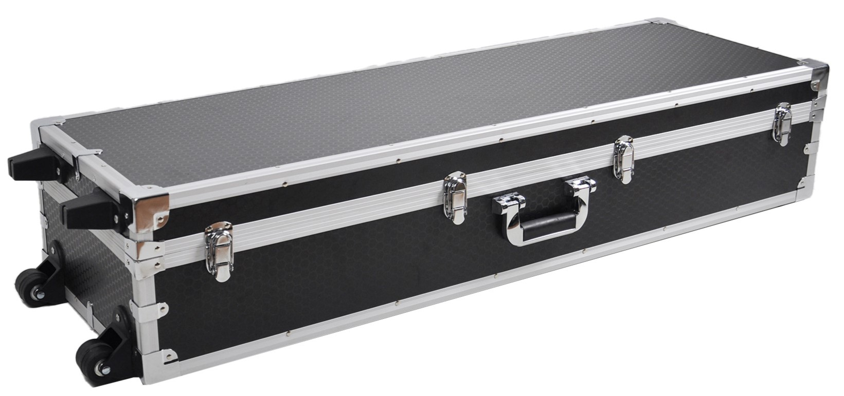 Avec des dimensions compactes et un poids modéré, ce flight-case s’intègre parfaitement dans les véhicules utilitaires et camions de tournée. Les poignées ergonomiques et les roulettes intégrées assurent une manipulation facile même en solo. Le revêtement en nid d’abeille apporte un aspect visuel professionnel et robuste.