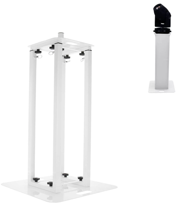 Grâce à leur plateau supérieur de 30 x 30 cm rembourré EVA avec velcro et passe-câbles, les totems LSA 200 XL WH sont compatibles avec une grande variété d’équipements : enceintes, lyres jusqu’à 10 kg, projecteurs, ou structures LED. L’adaptateur d’embase 35 mm inclus permet une fixation rapide des enceintes standards.