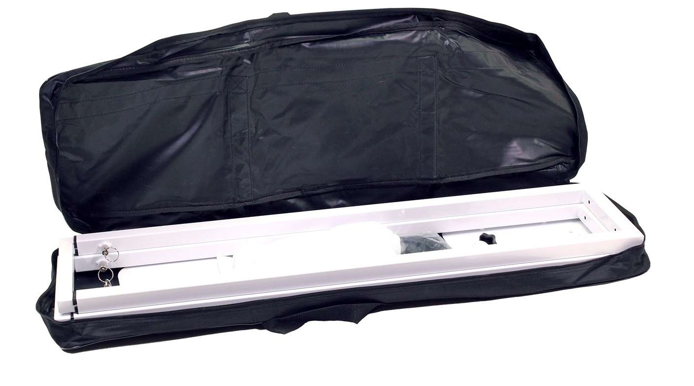 L'installation du LSA 200 XL WH est ultra rapide : dépliez la structure, fixez les plaques de base et supérieure, insérez l’adaptateur 35 mm si nécessaire, puis habillez avec le lycra. Aucun outil n’est requis, et le montage complet prend moins de 2 minutes. Idéal pour les techniciens événementiels en déplacement.