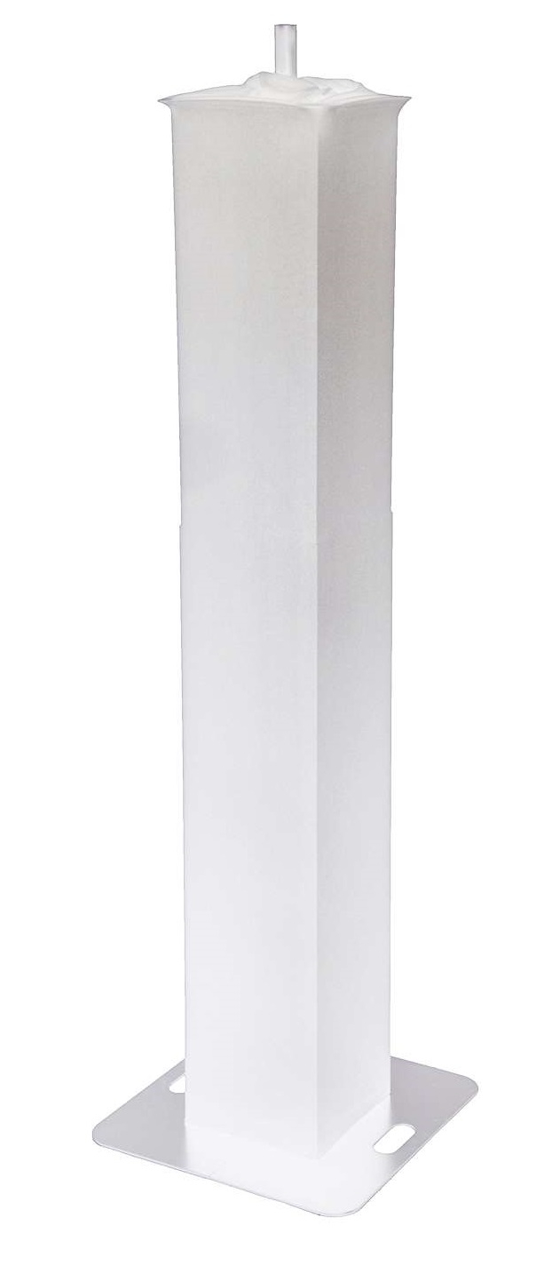 Le lycra blanc se tend parfaitement autour du totem, offrant une silhouette nette et élégante. Combiné à un éclairage DMX ou LED, il devient un élément de décoration scénique à part entière, renforçant la cohérence visuelle de votre prestation.