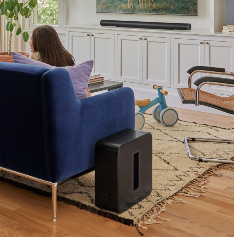 Le caisson Sonos Sub 4 est conçu pour délivrer des graves puissants et nets, même à haut volume. Il intègre deux woofers opposés qui éliminent les vibrations internes et évitent toute distorsion. Cette configuration assure une restitution fidèle des basses, sans interférence.
