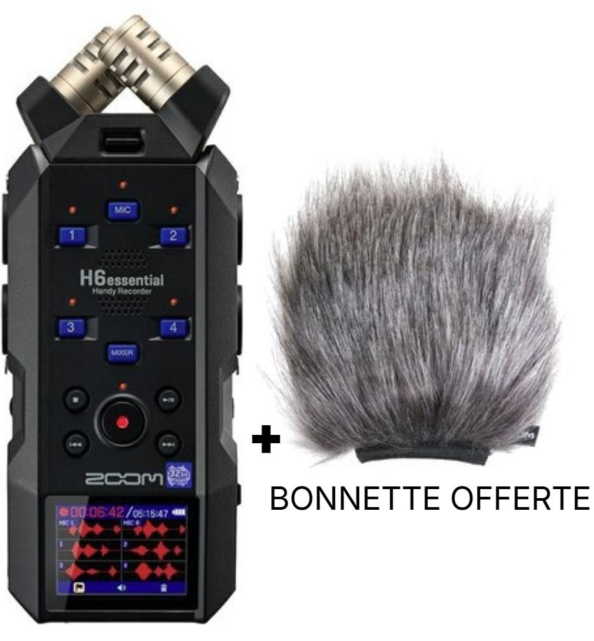 Le Pack H6essential + bonnette WSH-4e est un pack enregistreur audio, comprenant le Zoom H6 Essential et une bonnette anti-vent offerte. Ce modèle phare allie enregistrement 32 bits à virgule flottante, capsules micro interchangeables et 4 entrées XLR/TRS pour un usage professionnel en mobilité. Grâce à sa connectivité USB-C, sa compatibilité multi-plateformes et ses nouvelles fonctions de réduction de bruit IA, il garantit une captation sonore d’une précision inégalée, même en extérieur. Idéal pour les musiciens, journalistes, podcasteurs et vidéastes exigeants, ce pack complet vous offre performance, fiabilité et polyvalence sur le terrain.
