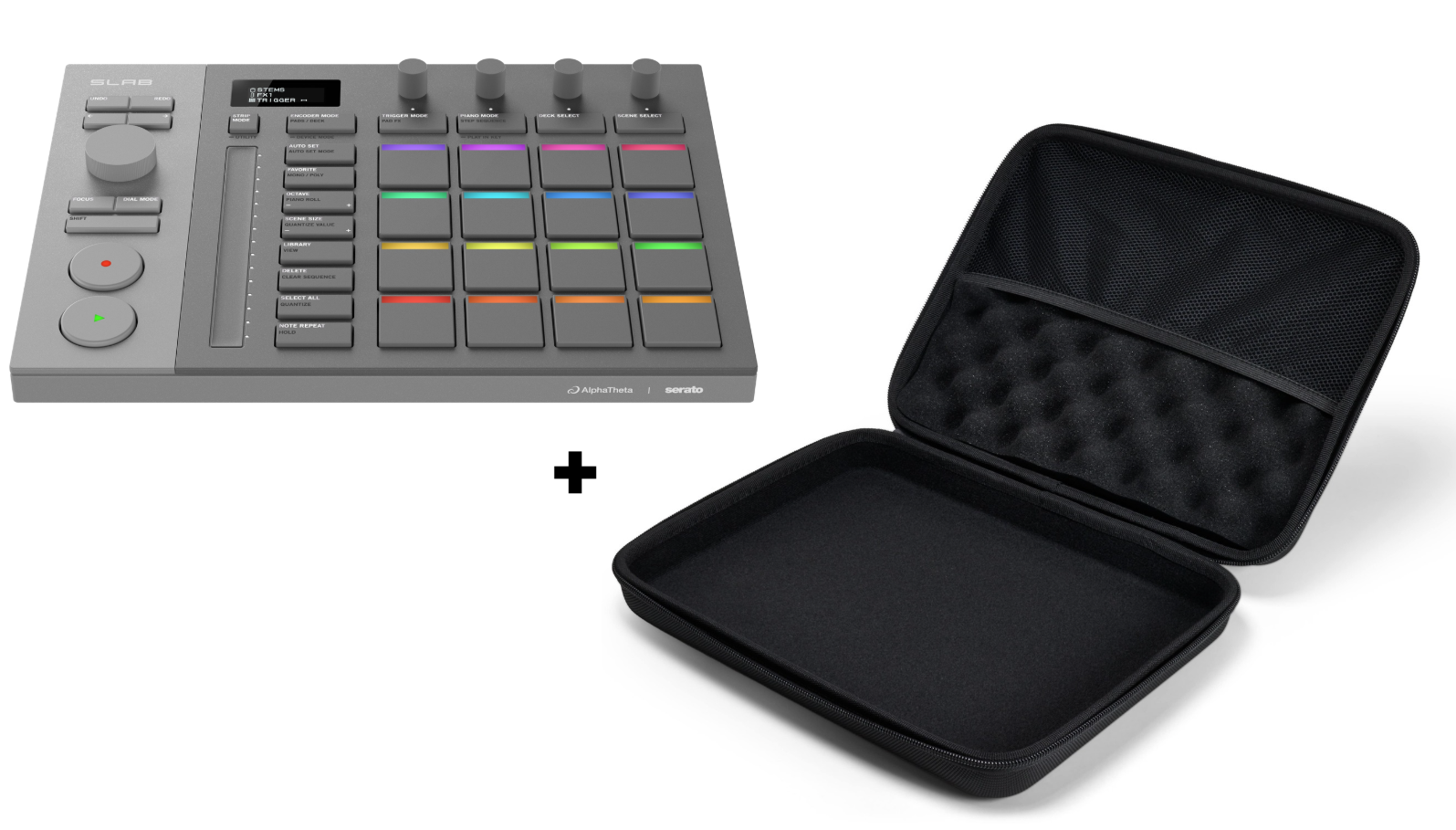 Le SLAB d'AlphaTheta est le premier contrôleur conçu spécifiquement pour Serato Studio. Il offre un workflow intuitif et rapide, grâce à une section transport performante, un écran OLED, des encodeurs tactiles, une bande tactile longue course, et 16 pads LED multicolores sensibles à la vélocité. Grâce à son mode MIDI polyvalent, il reste compatible avec d'autres logiciels Serato et DAW.