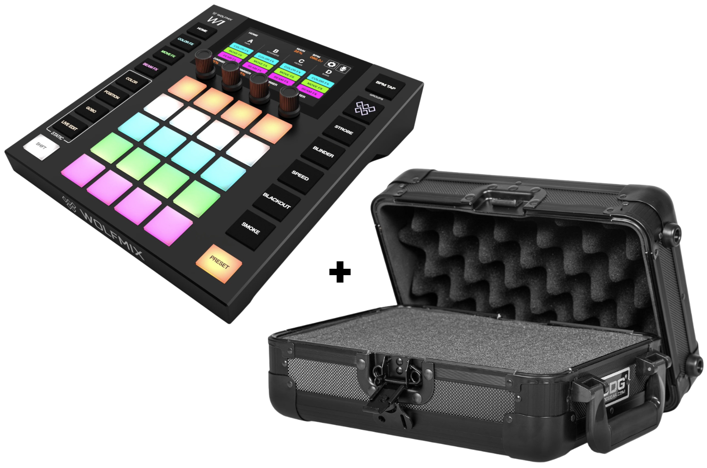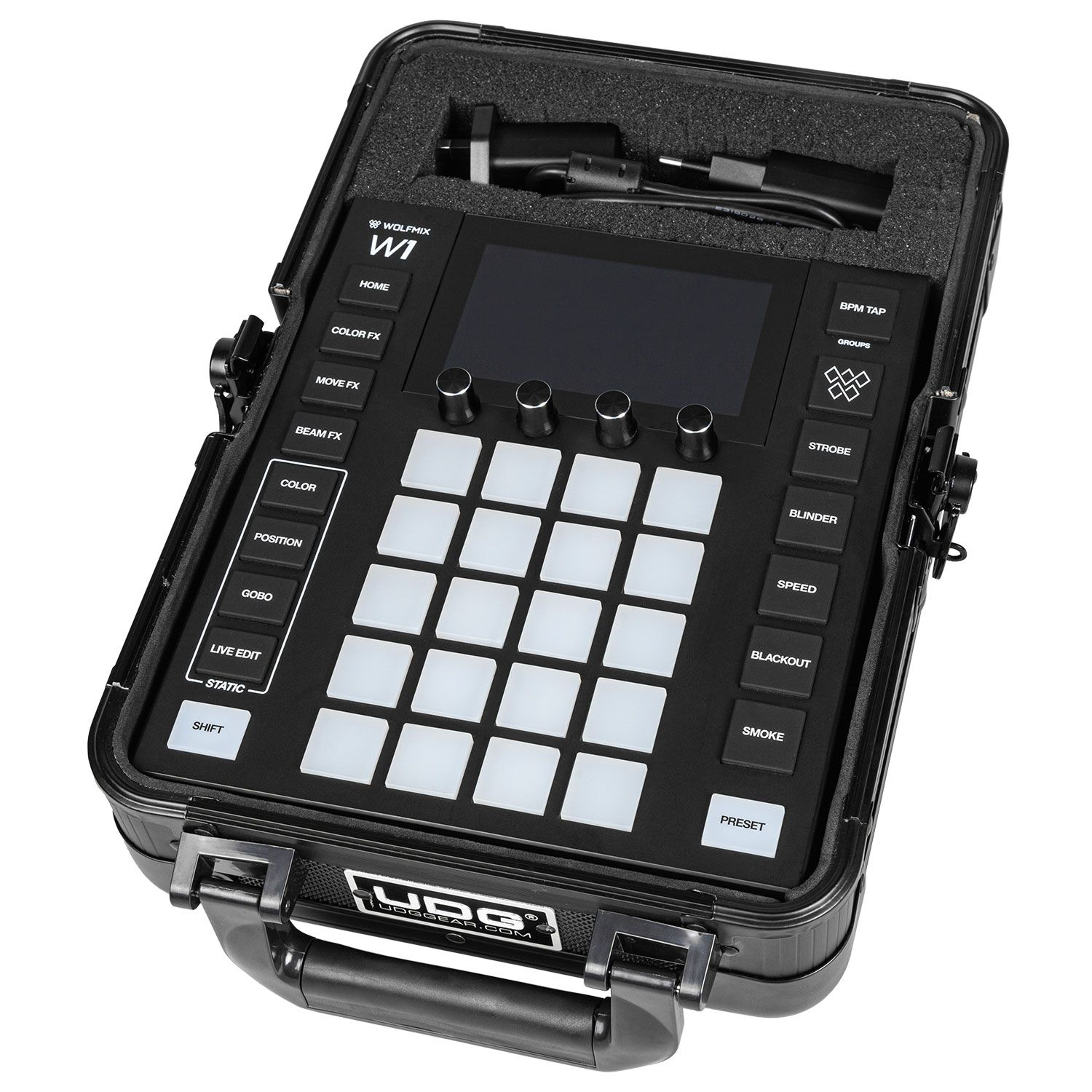 Le Wolfmix W1 MK3 permet un contrôle DMX complet sans ordinateur, via un écran TFT de 4,3 pouces et des modules FX synchronisés à la musique. Associé à un flight case UDG noir renforcé en aluminium avec mousse adaptable, ce pack devient l’allié parfait des professionnels exigeants qui recherchent performance et sécurité sur la route comme sur scène.