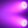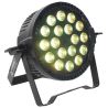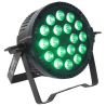 Le Power Lighting PAR SLIM 18x6W QUAD est un projecteur PAR LED conçu pour l’éclairage d’ambiance, la scène et les installations événementielles. Il intègre 18 LED de 6 W 4-en-1 RGBW et une technologie QUAD qui facilite le mixage des couleurs pour obtenir des teintes variées et des fondus réguliers. Son angle d’ouverture de 25° permet de cibler efficacement la zone à éclairer. Ce projecteur compact dispose de plusieurs modes de contrôle, dont DMX512, maître-esclave, automatique, musical et télécommande infrarouge. Sa coque ABS robuste, son afficheur digital, son refroidissement intégré, sa connectique secteur IN/OUT et son double étrier métal réglable en font une solution pratique pour les prestations, animations et installations fixes ou mobiles.