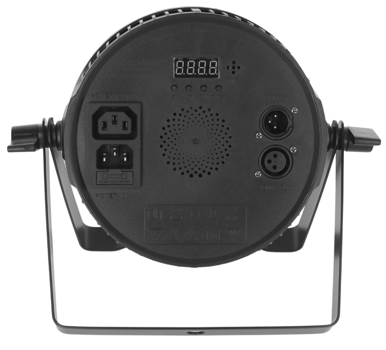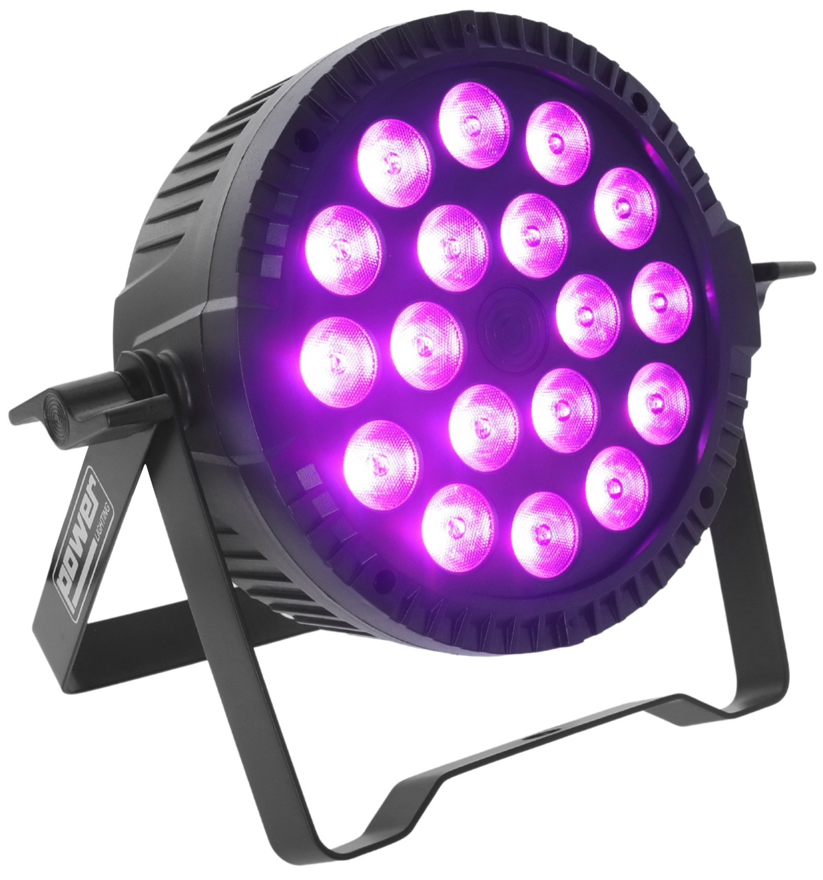 La série PAR SLIM met en avant un format hyper compact, et ce modèle confirme cette orientation avec des dimensions de 165 x 165 x 70 mm pour un poids de 1,50 kg. Ce gabarit facilite le transport, le stockage et l’intégration dans des configurations où l’espace est limité, par exemple sur une petite scène, en fond de salle, sur une structure légère ou dans une installation décorative temporaire. Le double étrier métal réglable apporte une solution de fixation et de positionnement utile pour adapter l’orientation du faisceau selon la zone à couvrir.