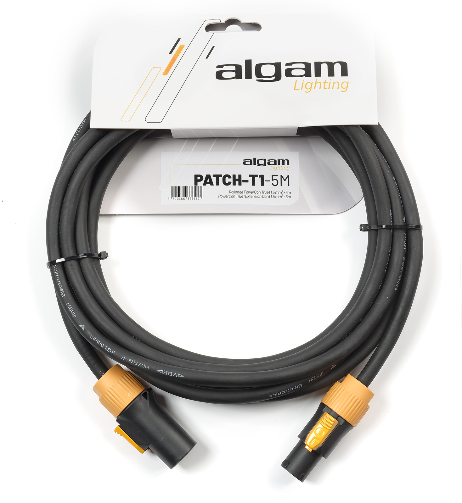 Le ALGAM LIGHTING PATCH-T1-5M est une rallonge PowerCon conçue pour les environnements exigeants de la scène et de l’événementiel. Avec ses connecteurs TRUE1 mâle et femelle, ce câble de 5 m supporte jusqu’à 16A et permet une connexion sécurisée sous charge et sous tension. Doté d’une gaine en caoutchouc haute performance et conforme à la norme H07RN-F, il garantit robustesse et flexibilité. Idéal pour alimenter en chaîne des machines lumière, ce produit certifié VDE est un indispensable pour des installations fiables et performantes.